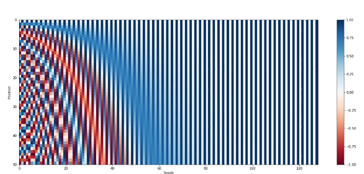 Positional Encoding ma naprawić ten problem, czyli wprowadzić informację o położeniu słowa, ale co ważniejsze, wprowadzić też informację o położeniu dwóch słów względem siebie.