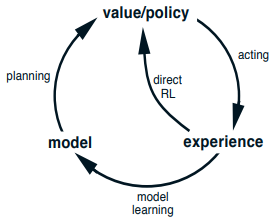 Planning w Reinforcement learningu to proces budowania / uczenia się modelu, który przewiduje jaki będzie kolejny stan po wykonaniu akcji. W planningu oprócz uczenia się jakie akcje powinniśmy podejmować będąc w każdym stanie (direct RL, np. Dynamic programming (RL), Monte Carlo Methods (RL), Temporal Difference Learning), uczymy się dodatkowo modelu środowiska.