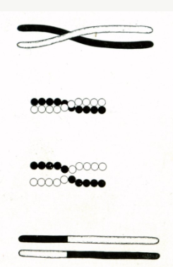 Proces zachodzący podczas mejozy. Chromosomy homologiczne wymieniają się w nich niektórymi częściami. Działa to tak, że znajdują się dwa homologi (jeden od matki, jeden od ojca) i układają się obok siebie. Następuje wymiana - niektóre fragmenty przeskakują od homologa matczynego do ojcowego i na odwrót. Tą wymianą można zobrazować tak: