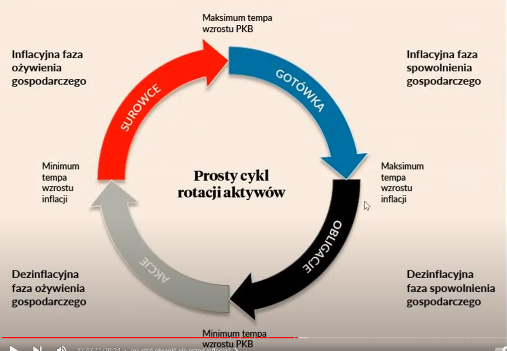 Kolor oznacza czas, w którym kapitał napływa do grupy aktywów napisanych na strzałce. Żeby zarobić, trzeba kupić dane aktywo tuż przed zaczęciem się danej strzałki - tak by było idealnie.